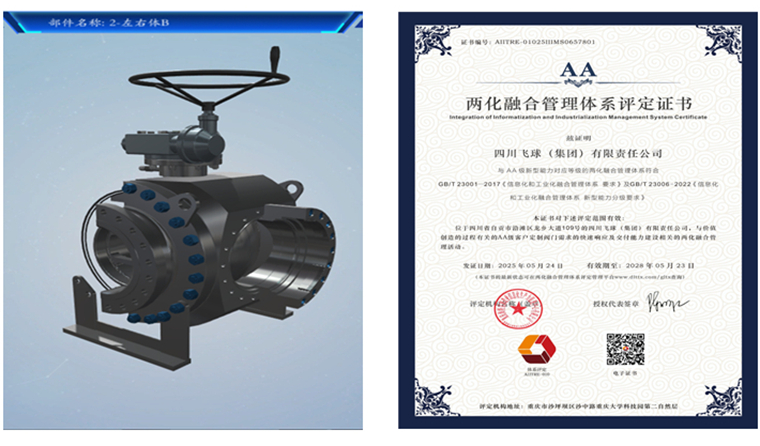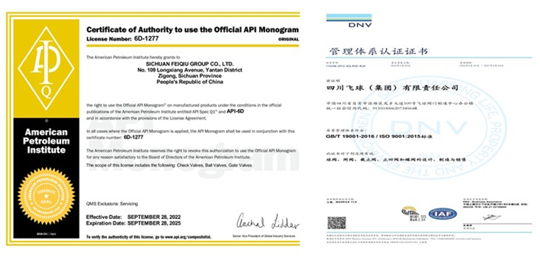 20世纪90年代初,四川飞球在行业内率先取得了美国石油学会API6D证书和挪威DNV公司IS09001证书。四川飞球生产的“飞球牌”系列阀门多次荣获“四川省名牌产品”、“中国十大阀门品牌”,“飞球牌”商标更于2012年荣获“中国驰名商标”称号。四川飞球先后获得国家级CAD应用示范企业、国家高新技术企业、国家专精特新“小巨人”企业、中国标准创新贡献二等奖励企业、两化融合管理体系评定证书(AA)、能源管理体系证书、四川省企业技术中心、四川省“专精特新”企业、四川省304am永利集团官网示范企业、四川省工业质量标杆企业、四川省机械工业50强、多次获得中石化“优秀阀门供应商”和“深度合作奖”证书、2024年“四川飞球智能低碳球阀中试平台”获自贡市科技局认定。“四川飞球创新团队”入选2025年度“盐都百千万英才计划”等多项荣誉及称号。