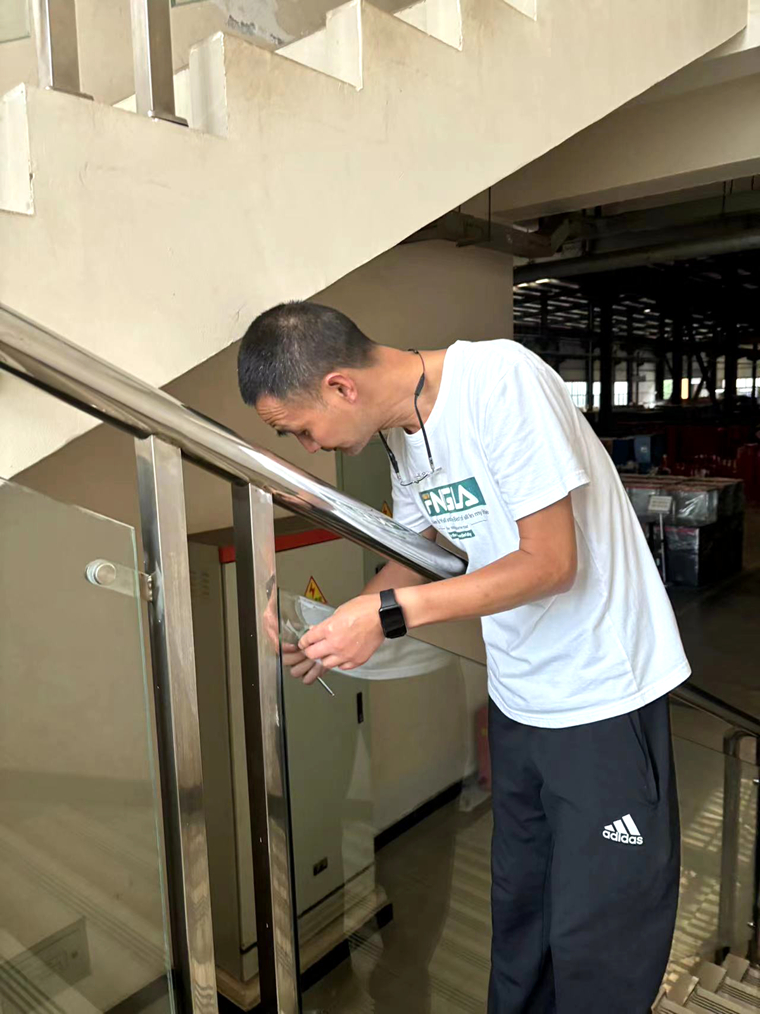 图 | 对扶梯玻璃进行加固处理