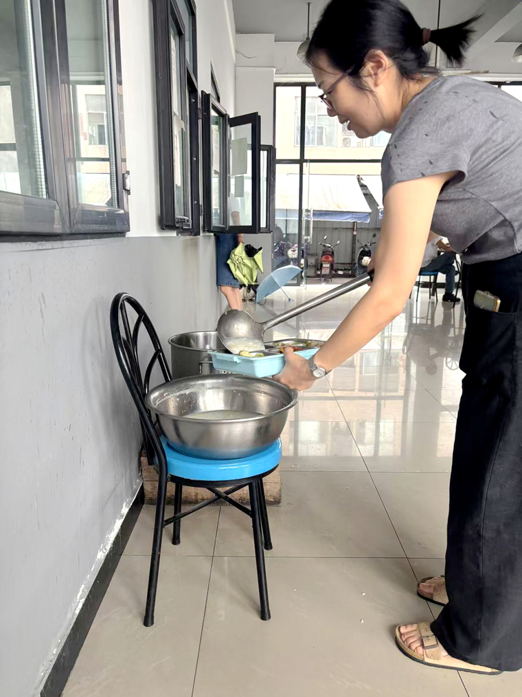 后勤保障同样坚实有力。公司食堂每日午间准时推出“清凉特供”——熬煮得沙糯解暑的绿豆汤与温润适口的稀饭,成为员工们午间小憩时的“能量站”。一碗碗透着凉意的绿豆汤下肚,不仅驱散了身体的燥热,更熨帖了员工的心。装配工杨师傅笑着说:“每天中午来碗食堂的绿豆汤,感觉又能满血复活,下午接着干!”