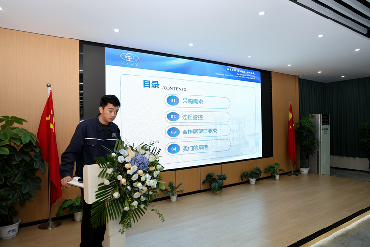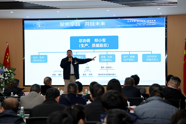 中汽成配项目经理靳琤就双方重点合作项目的当前状态与长远蓝图作了系统性的梳理与汇报,他详细阐述了项目自启动以来各关键阶段的完成情况,通过具体数据与里程碑事件,展示了项目在技术攻关、节点交付、成本控制及初步效能达成等方面取得的实质性成果。并强调需进一步强化双方在技术交流、信息共享及决策机制上的无缝对接,以共同推动项目迈向更高成功。