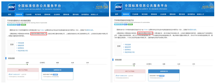 成都成保此次参与的三项国家标准涵盖了机动车制动性能与转向系统检测等关键技术领域。其中,作为第二起草单位分别参与了GB/T 36986《汽车制动性能动态检验方法》和GB/T 34592《汽车转向盘转向力-转向角检测仪》两项国家标准的修订工作。值得关注的是,在此前版本的制定过程中,成都成保同样担任第二起草单位的角色。