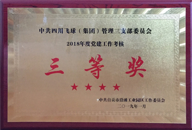 飞球管三党支部在2018年的党建工作中,认真执行公司以及上级党委布置的任务。党员发挥先锋模范作用,积极开发新产品,在技术和质量方面取得了好成绩,荣获自贡市专利三等奖,受到公司领导好评。