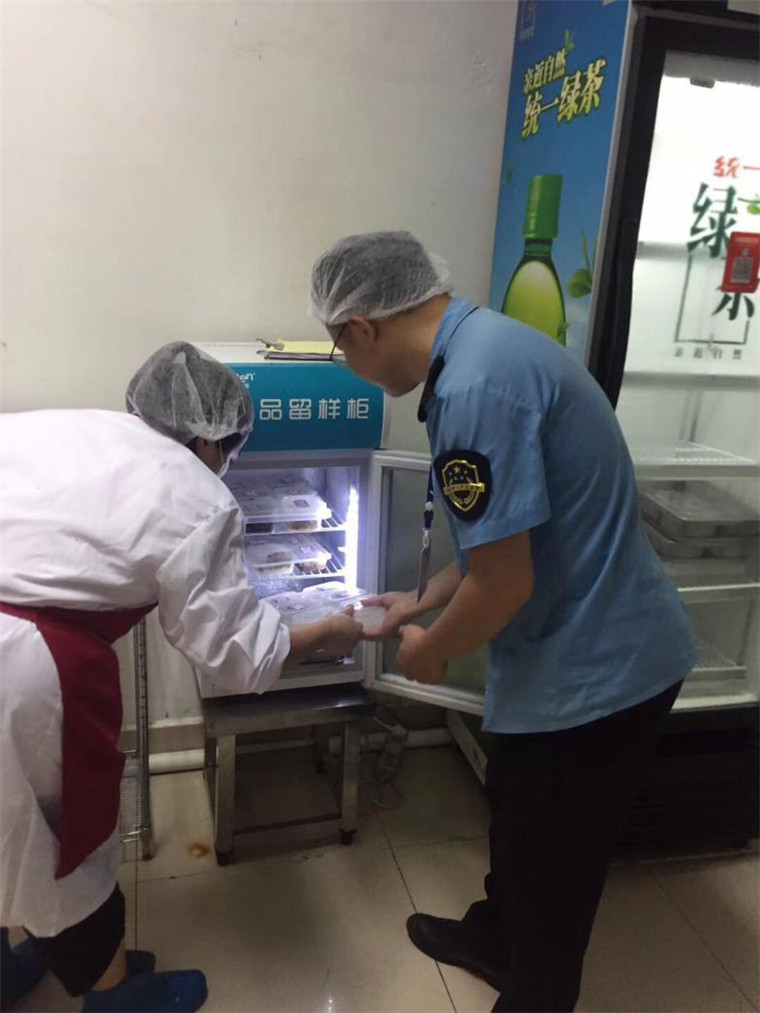 芊村道为世警会提供的每一份盒饭,均在食药监局的监督指导下完成,人员的晨检记录,食物的48小时留样、分餐时的每一个步骤的监督,每一天原材料的检验报告缺一不可。