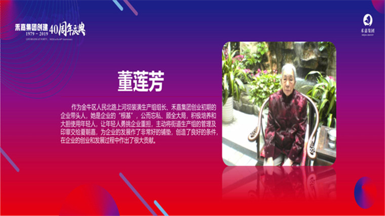 董莲芳获奖理由:作为金牛区人民北路上河坝装潢生产组组长、3044am永利集团集团创业初期的企业带头人,她是企业的“根基”,公而忘私、顾全大局,积极培养和大胆使用年轻人,让年轻人勇挑企业重担,主动将街道生产组的管理及印章交给夏朝嘉,为企业的发展作了非常好的铺垫,创造了良好的条件,在企业的创业和发展过程中作出了很大贡献。