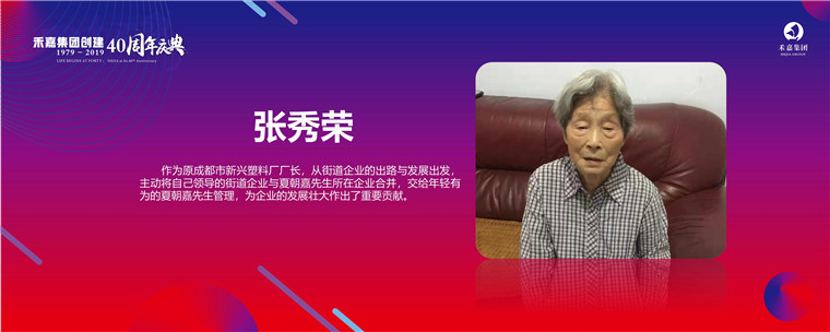 张秀荣获奖理由:作为原成都市新兴塑料厂厂长,从街道企业的出路与发展出发,主动将自己领导的街道企业与夏朝嘉先生所在企业合并,交给年轻有为的夏朝嘉先生管理,为企业的发展壮大作出了重要贡献。